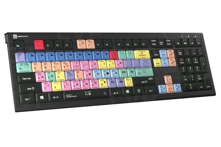LogicKeyboard Adobe Premiere Pro CC PC Astra 2 UK – podsvícená klávesnice s klávesovými zkratkami: 5stupňové stmívatelné LED podsvícení, barevně odlišené klávesy Premiere Pro, dva USB huby, nůžkový spínač pro tiché psaní, plug-and-play pro Windows 7–10 – zvyšuje rychlost a pohodlí při úpravách za jakýchkoli světelných podmínek.