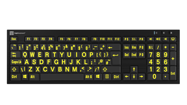 Klávesnice Logickeyboard LargePrint byla navržena pro osoby se zrakovým postižením nebo pro osoby, které jen obtížně čtou stávající příkazy na klávesnici. Díky vlastnímu tisku LargePrint je ovládání klávesnice mnohem jednodušší a rychlejší.