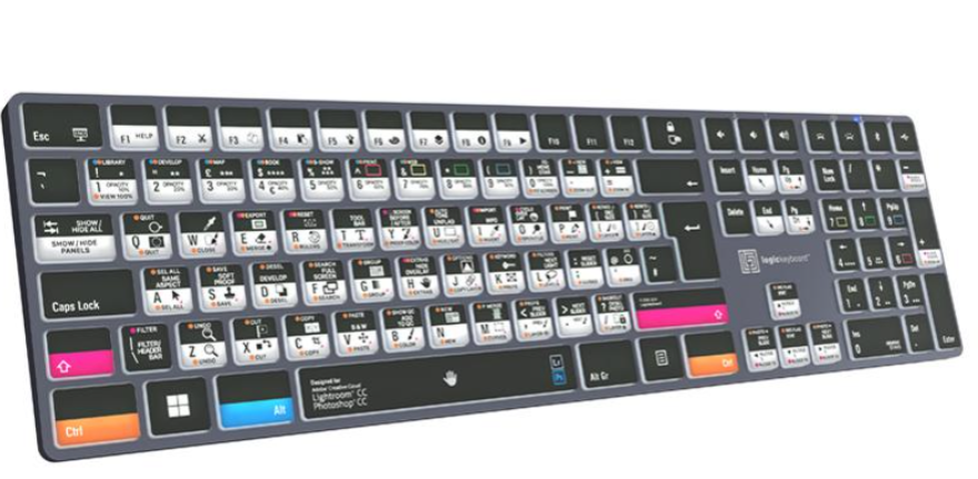 Klávesnice Logickeyboard Adobe Photographer PS/LR Astra 2 pro PC je výkonná klávesnice