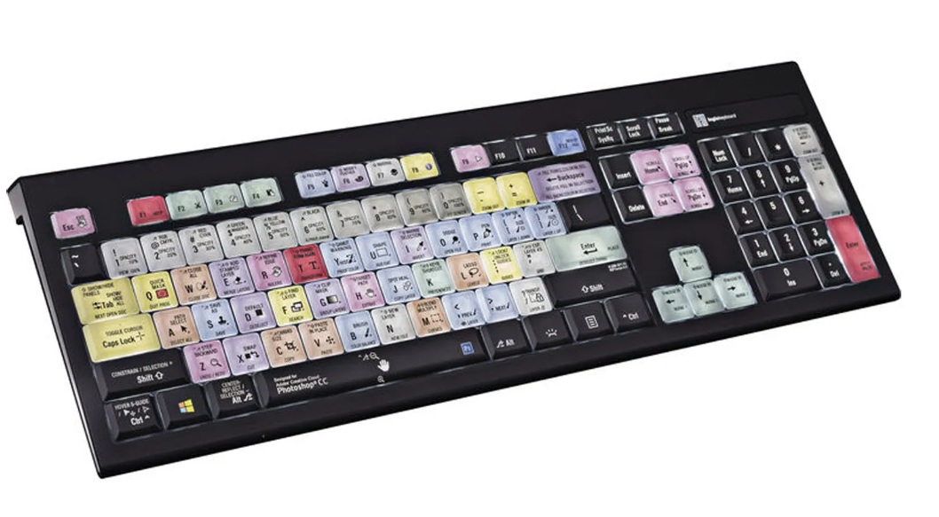 Podsvícená klávesnice Logickeyboard ASTRA2 pro Adobe Premiere Pro CC a Adobe Photoshop CC je výkonným nástrojem pro tvůrce pracující s aplikacemi Adobe Premiere Pro CC a Adobe Photoshop CC. Je navržena tak, aby zvyšovala produktivitu, a disponuje jasně označenými, barevně odlišenými klávesovými zkratkami s grafickými symboly, které vám umožňují okamžitý přístup k základním funkcím a snižují nutnost využívat složité nabídky.