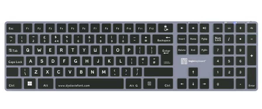 Bezdrátová klávesnice Logickeyboard Dyslexie Bluetooth pro PC (britská klávesnice)