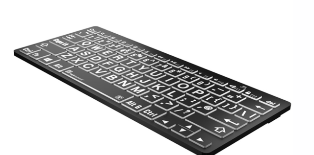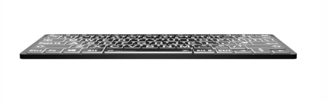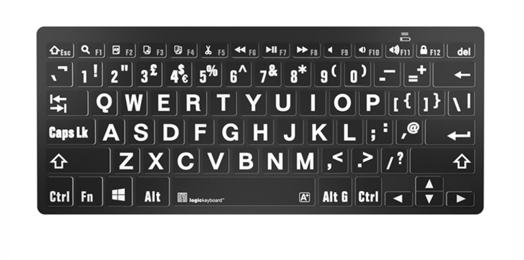 Klávesnice LogicKeyboard XLPrint Bluetooth White on Black pro PC je klávesnice s velkými znaky, určená pro uživatele systému Windows se zrakovým postižením. Disponuje 78 klávesami s výrazným bílým písmem na černém pozadí, připojením přes Bluetooth a hmatatelnými klávesami se nůžkovým mechanismem a nabízí pohodlné, přenosné a bezdrátové psaní.