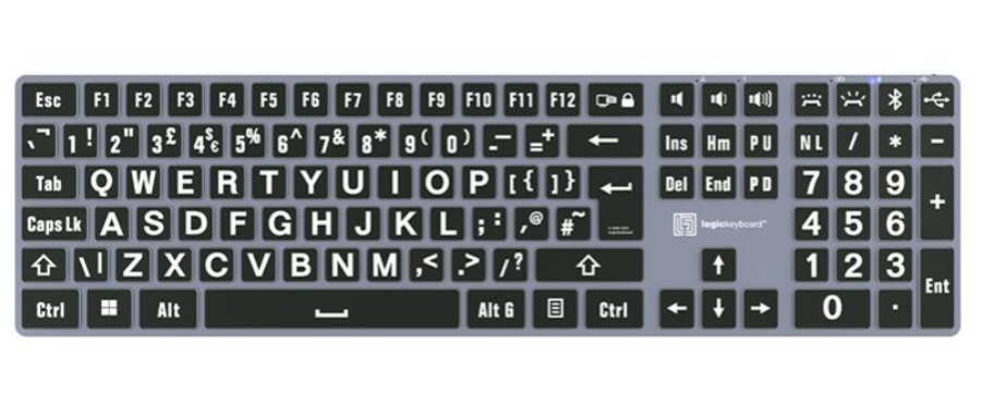 Bezdrátová klávesnice Logickeyboard Dyslexie Bluetooth pro PC (britská klávesnice)