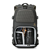 Batoh Lowepro Flipside 500 AW II, navržený pro profesionální fotografy pohybující se po turistických stezkách, městských ulicích nebo na cestách, kombinuje velkou úložnou kapacitu s bezpečným přístupem k vybavení přímo z boku těla. Tento batoh, navržený pro přepravu profesionální zrcadlovky s nasazeným 400mm objektivem nebo s odmontovaným 500mm objektivem, pojme také 1–2 další fotoaparáty, 4–6 dalších objektivů, blesk, 15palcový notebook a 10palcový tablet. Kapsa CradleFit udržuje váš notebook a tablet v bezpečí a chrání je, zatímco úchyt Hideaway Tripod Mount vám umožňuje bezpečně připevnit kompaktní stativ.