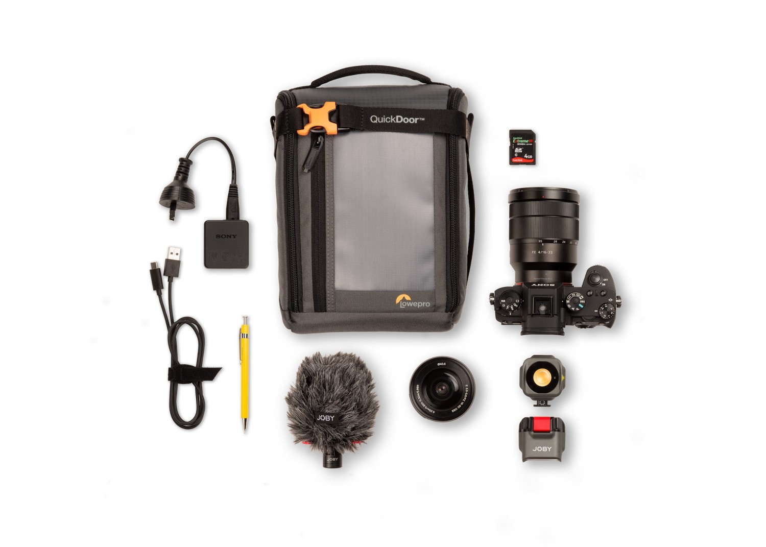 Aby nedošlo k nechtěnému otevření celého pouzdra, je vybaveno systémem QuickDoor. Ten umožňuje rychlý přístup k fotoaparátu, aniž by se obsah pouzdra vysypal.