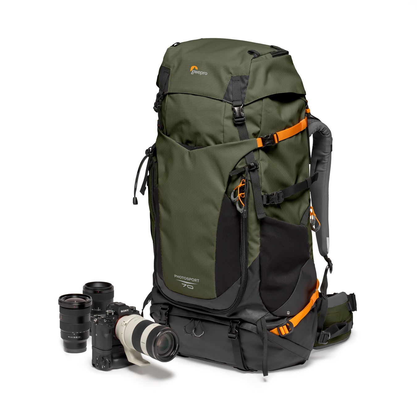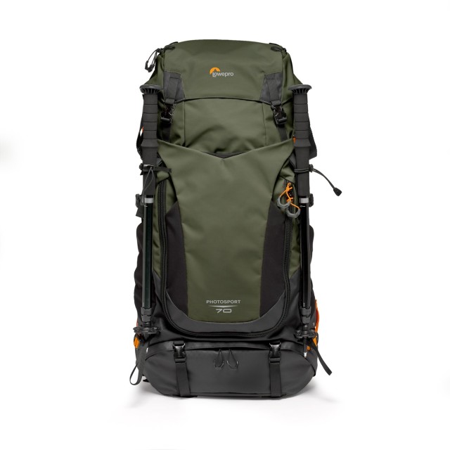 Lowepro PhotoSport PRO 70L AW IV je profesionální batoh na fotoaparát určený pro vícedenní fotografování v přírodě. Je lehký a vyrobený z 86 % z recyklovaného materiálu. Pojme fotoaparát typu CSC/DSLR s nasazeným objektivem 70–200 mm f/2,8, 1–2 náhradní objektivy a nabízí prostor pro odnímatelnou vložku GearUp PRO XL, hydratační systém a nezbytné outdoorové vybavení.