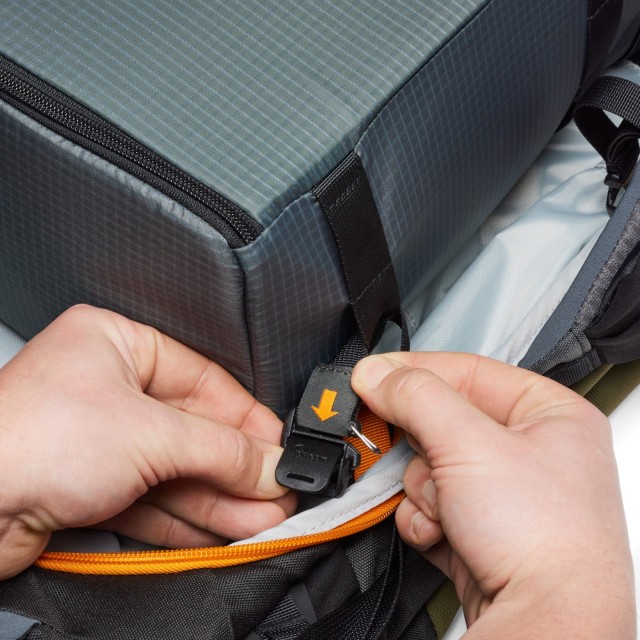 Je navržen tak, aby dokonale spolupracoval s kamerovými boxy GearUP Pro (L, XL a XXL), a nabízí kompatibilitu s odnímatelnou zavěšenou vložkou na fotoaparát pro větší ochranu a stabilizaci vašeho vybavení. Funkční přístup zezadu umožňuje rychlé vyndání vybavení bez sundávání batohu, zatímco funkce specifické pro horolezectví – jako smyčky na cepíny, úchyty na lano a držák na helmu – z něj dělají ideální volbu pro alpské výpravy s více aktivitami.