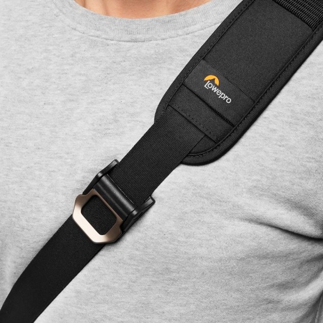 K dispozici je upevňovací bod pro kompaktní stativ a modulární možnosti vnějšího připojení. Popruhy lze snadno nastavit: vysoko na ramena pro rychlejší pohyb, s křížovým hrudním pásem pro pohodlí a stabilitu, nebo nízko u boku pro snadnou výměnu objektivů.