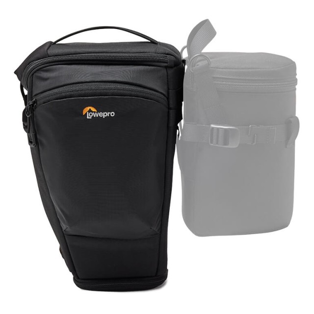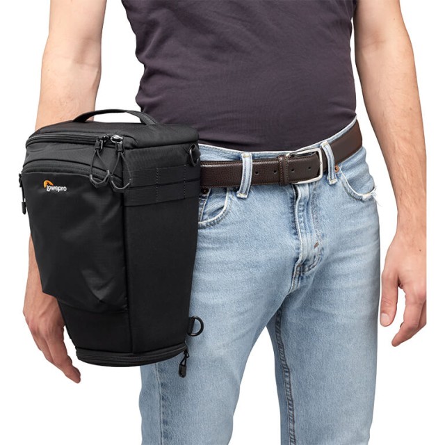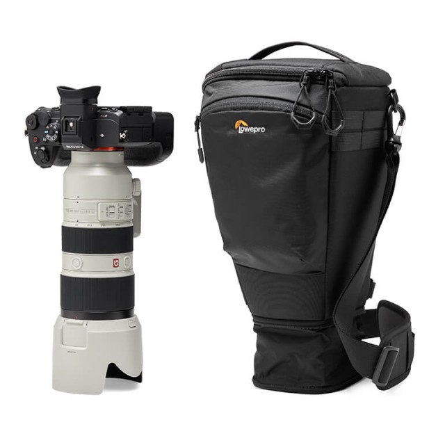 TopLoader je vhodný pro tělo full frame s gripem a objektivem do 70-200 mm F2,8, s rozšířením pro sluneční clonu. Kompatibilní s příslušenstvím SlipLock, jako jsou pouzdra na objektivy