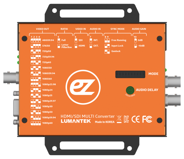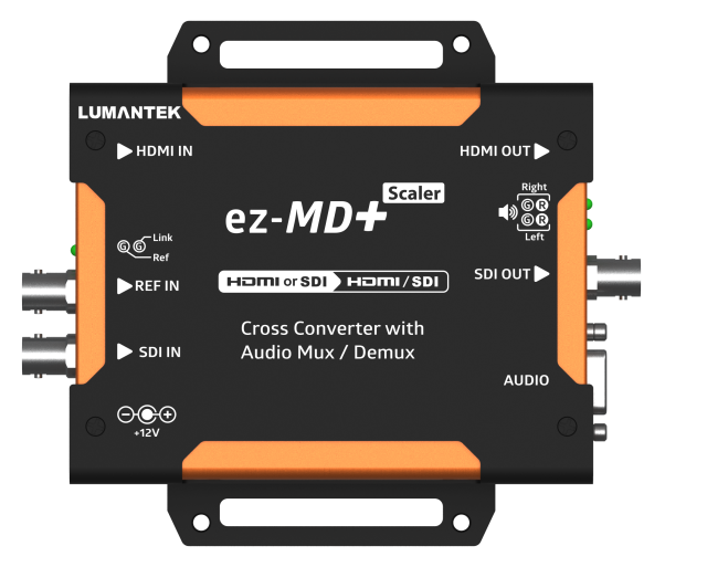 Ez-MD+ společnosti LUMANTEK je kompaktní křížový převodník pro HDMI na SDI nebo SDI na HDMI. Systém genlock umožňuje synchronizaci signálů pro spojení nespárovaných výstupních signálů. Podporuje symetrický zvuk XLR s ovladačem zpoždění zvuku.
