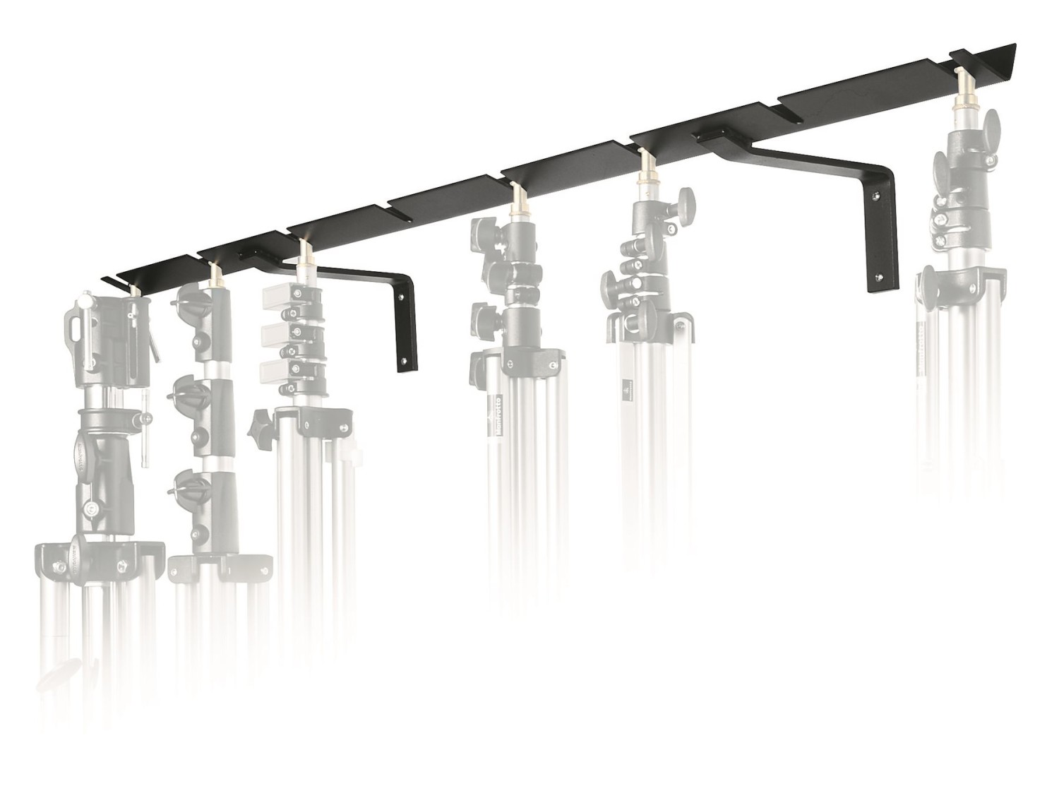 Manfrotto Wall Mounted Stand Holder for 8 Stands je navržen pro efektivní organizaci a skladování. Držáky pro umístění stativů jsou rozmístěny ve vzdálenosti 64,3 cm (25,3 palce) od sebe a mají hloubku 18,8 cm (7,4 palce), což poskytuje dostatečný prostor pro bezpečné uložení různých typů světelných stojanů.