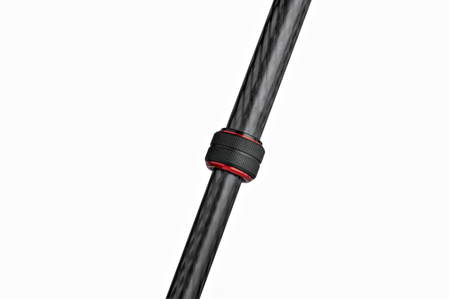 Stativ má také vestavěný mechanismus naklápění sloupku o 90°, který zůstává bezpečně uložen, dokud není potřeba. Když je potřeba použít středový sloupek, stačí ho zvednout jedním prstem a nechat vyklopit do vodorovné polohy. V kombinaci se čtyřmi možnými úhly nohou stativu poskytuje tento mechanismus dokonalou stabilitu při focení na nerovném terénu.Nové 190go vděčí za svůj profesionální status především novým karbonovým trubkám. Karbonové nohy tohoto stativu jsou dokonalou kombinací maximální lehkosti a stability.