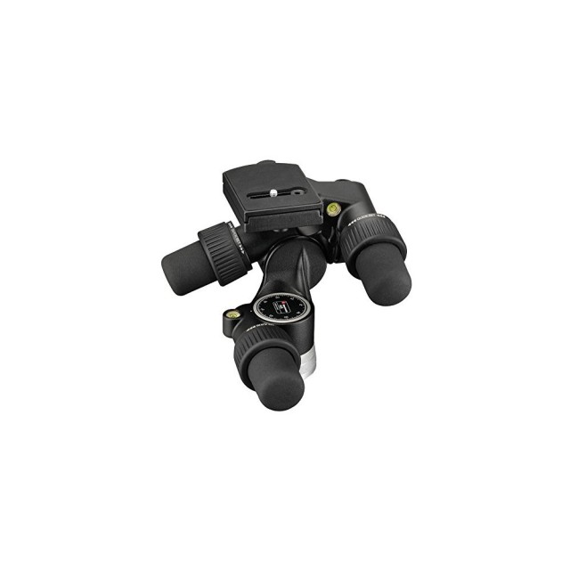 Manfrotto 405 Geared Tripod Head je profesionální hliníková hlava s ozubeným převodem určená pro přesné ovládání středoformátových a 35mm fotoaparátů. Je vybavena velkými ergonomickými mikrometrickými knoflíky pro plynulé pohyby, rychlým odblokováním pro hrubé nastavení polohy, nezávislými zámky na všech osách, třemi vodováhami, 360° panoramatickým otáčením, +90°/-30° předním nakloněním, +30°/-90° bočním nakloněním a nosností 7,5 kg v lehké konstrukci o hmotnosti 1,6 kg.
