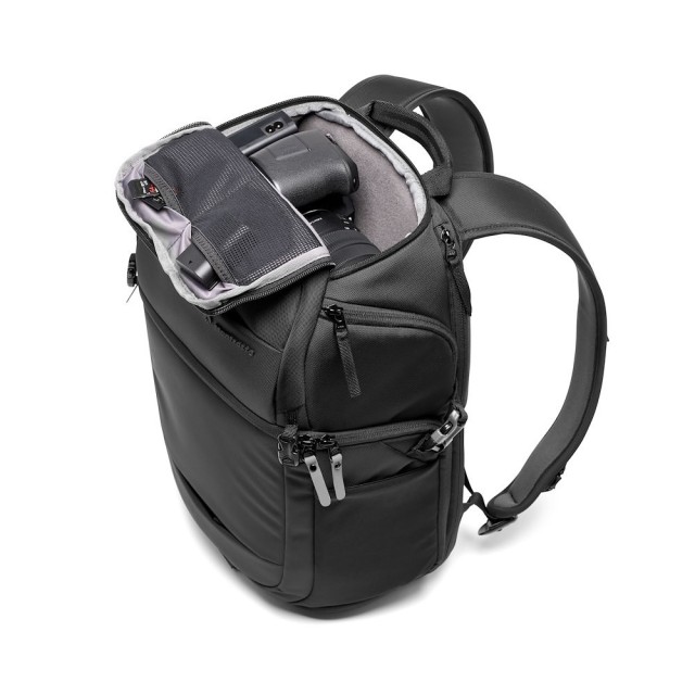 Multifunkční batoh na fotoaparát a notebook pro rychlé fotografování.Batoh Manfrotto Advanced Fast IIIbyl navržen tak, aby byl extrémně univerzální a vyhovoval vašim různým preferencím použití:oboustranný přístup do hlavní přihrádky na vybavení,horní přístup pro osobní věci nebo druhý fotoaparátpodle vašich preferencí, přední otvor pro snadné uspořádání celé vaší fotografické výbavy. Taška byla navržena tak, aby snadno pojalafull-frame bezzrcadlovku s připojeným objektivem 70-200 mm f/4 spolu s 3 dalšími objektivy a bleskem.