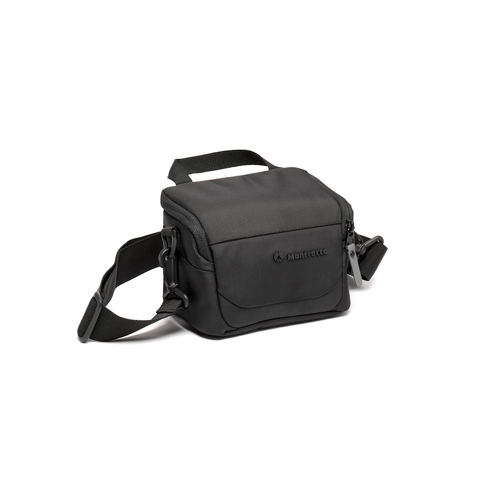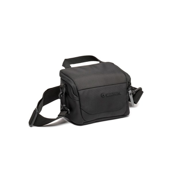 Manfrotto MB MA3-SB-XS Advanced Shoulder Bag XS III je černá voděodolná brašna o objemu 2 litry a hmotnosti 210 g, navržená pro bezzrcadlovky CSC. Do plně polstrované přihrádky o rozměrech 16 × 11 × 12,5 cm s přizpůsobitelnými přepážkami, zipem s plnou klopou, odnímatelným popruhem a přiloženou pláštěnkou se vejde fotoaparát s objektivem z základní sady a jeden další objektiv.