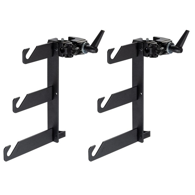 Sada Manfrotto 044 B/P promění jakýkoli Autopole na stanici pro pohon tří rolí papíru. Každý černý eloxovaný hliníkový hák je vybaven integrovanou svorkou Super Clamp 035 (čelisti 13–55 mm), která se pomocí jediné T-rukojeti upevní na trubky Autopole o průměru 25–45 mm. Držák ve tvaru písmene U pojme standardní kovové jádra nebo příčky Expan, zatímco bezpečnostní kolík zabraňuje sklouznutí role. S hmotností 1,425 kg na svorku přidává tato dvojice minimální zátěž, ale umožňuje plynulé přepínání mezi bezšvovými papírovými, vinylovými nebo látkovými pozadími – ideální pro portrétní studia, domy nebo velkoobjemové e-commerce focení, které vyžaduje rychlé změny barev.