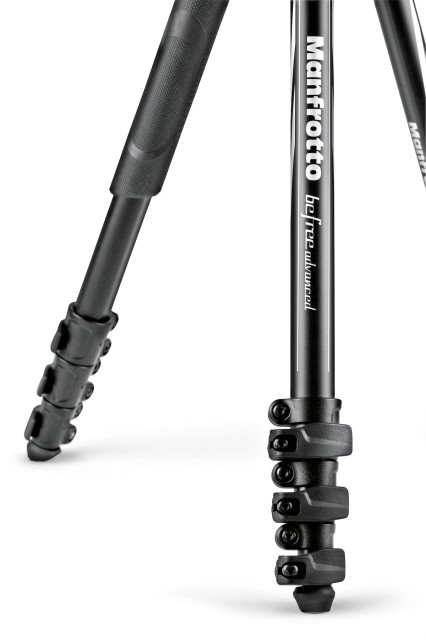 Každá noha stativu Befree Advanced se skládá ze čtyř sekcí, které lze nastavit a bezpečně zafixovat pomocí páčkových zámků QPL na všech segmentech. Boční volič vám umožňuje nastavit stativ do tří různých úhlových konfigurací, což umožňuje fotografování z nízkého úhlu pouhým stisknutím tlačítka. Nohy doplňuje stejně robustní středová kulová hlava, která nabízí dedikovaný volič pro panoramatický pohyb a také volič pro ovládání tření pro přesné nastavení odporu během používání. Rychloupínací destička nabízí dvojí kompatibilitu pro systémy RC2 a Arca-type, kromě hlav Manfrotto 804-3W a MH804-3W.