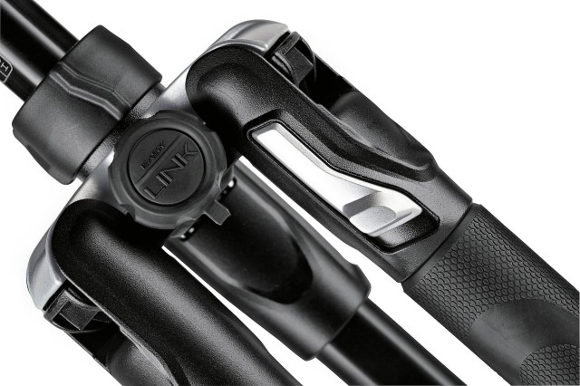 Na vrchní části nohou je k dispozici Easy Link, který umožňuje připojení kompatibilních příslušenství, jako jsou blesky nebo reflektory. To vám umožňuje použít stativ jako podpůrný systém a snížit množství vybavení, které musíte při cestování nosit. Pogumované nožičky zabraňují klouzání a pomáhají udržet Befree Advanced stabilní na většině typů terénu. Nakonec integrovaný háček na spodní části umožňuje přidání závaží, čímž se zvyšuje stabilita stativu při fotografování v obtížnějších podmínkách.
