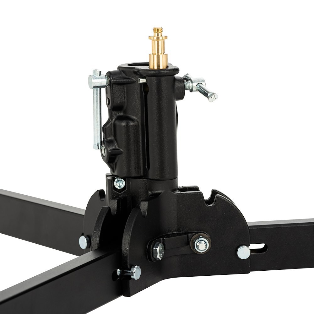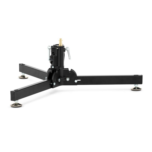 Manfrotto 299FBASE promění jakýkoli 35mm sloup C-standu v kompaktní stojan pro zadní osvětlení. Černá ocelová pavučina s práškovým nástřikem má tři obdélníkové nohy (20×40 mm), které se pro skladování sklopí na 36 cm, zatímco jedna vyrovnávací noha se nastavuje ±15° pro nerovné podlahy. Univerzální 28mm zásuvka je kompatibilní se standardními čepy a přiložený 16mm baby čep umožňuje přímou montáž příslušenství. S nosností 40 kg je ideální základnou pro malé LED diody, malé fresnelovy reflektory nebo ramena boomů ve filmových, video nebo fotografických studiích – v kombinaci s kolečky zajišťuje okamžitou mobilitu.