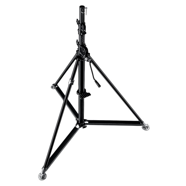 Manfrotto 387XBU Black Stainless Steel Super Wind Up Stand je profesionální odolný osvětlovací stojan navržený pro maximální stabilitu a dosah. Díky ozubenému sloupu, dvěma chromovým ocelovým výškovým nástavcům a maximální nosnosti 80 kg se dá vysunout až na 366 cm a nabízí bezpečnost certifikovanou TÜV.