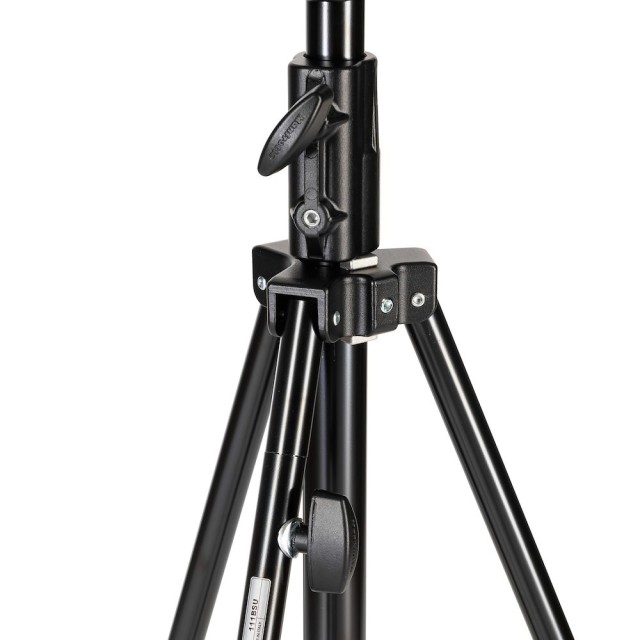 Manfrotto 111BSU je odolný černý chromový ocelový stojan s maximální výškou 380 cm, nosností 25 kg, dvojitě vyztuženými nohami, jednou vyrovnávací nohou a univerzální hlavou typu 14 (28 mm junior socket + 16 mm baby stud + 3/8″ závit). Tento stojan najdete na každém profesionálním filmovém, televizním a půjčovacím setu, když potřebujete zavěsit velká světla, nadhlavní rámy nebo 12×12 motýly vysoko nad dějištěm s naprostou stabilitou.
