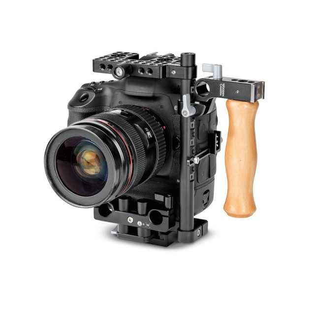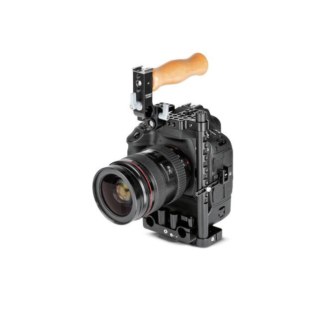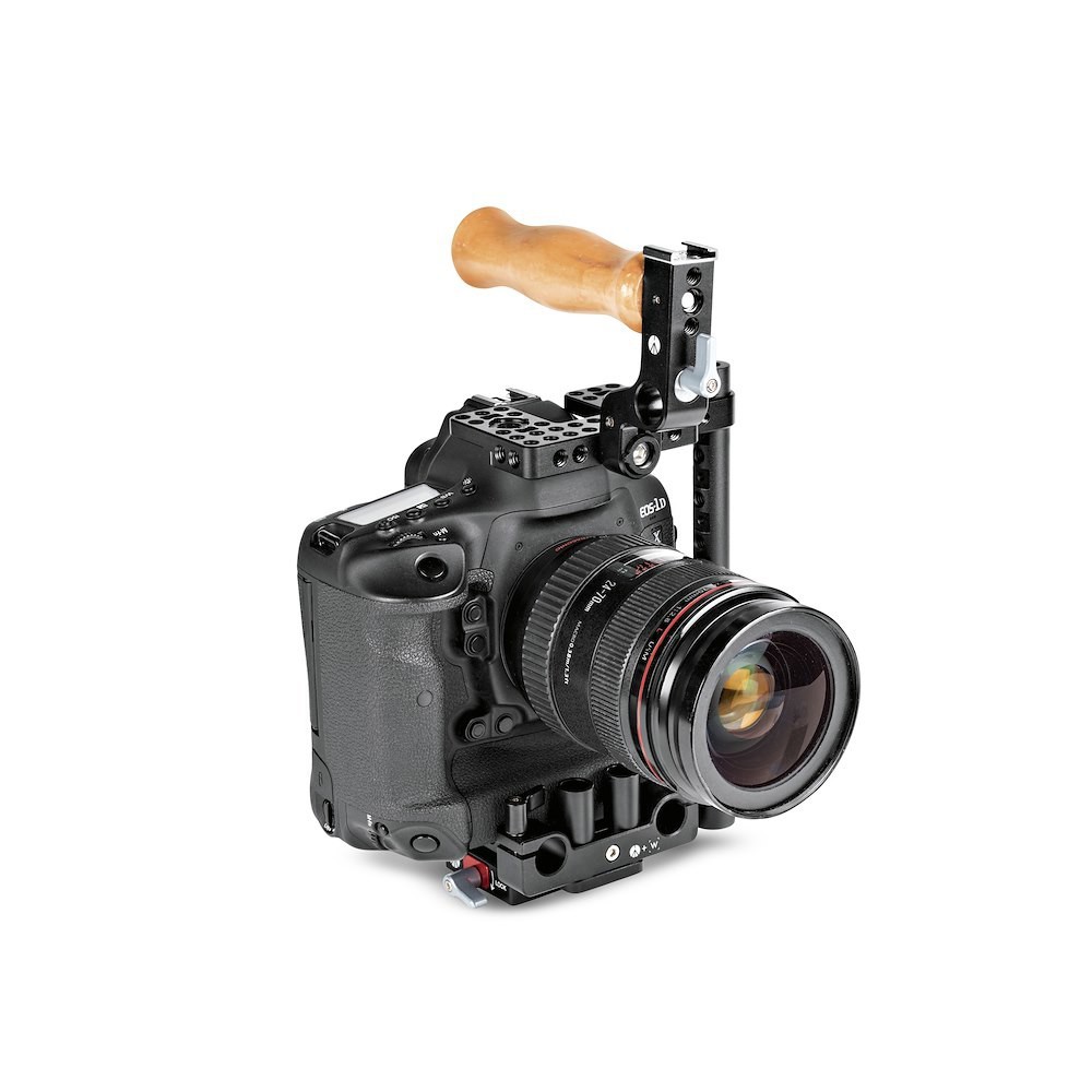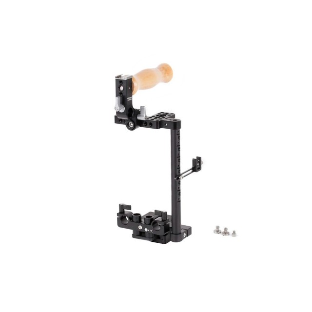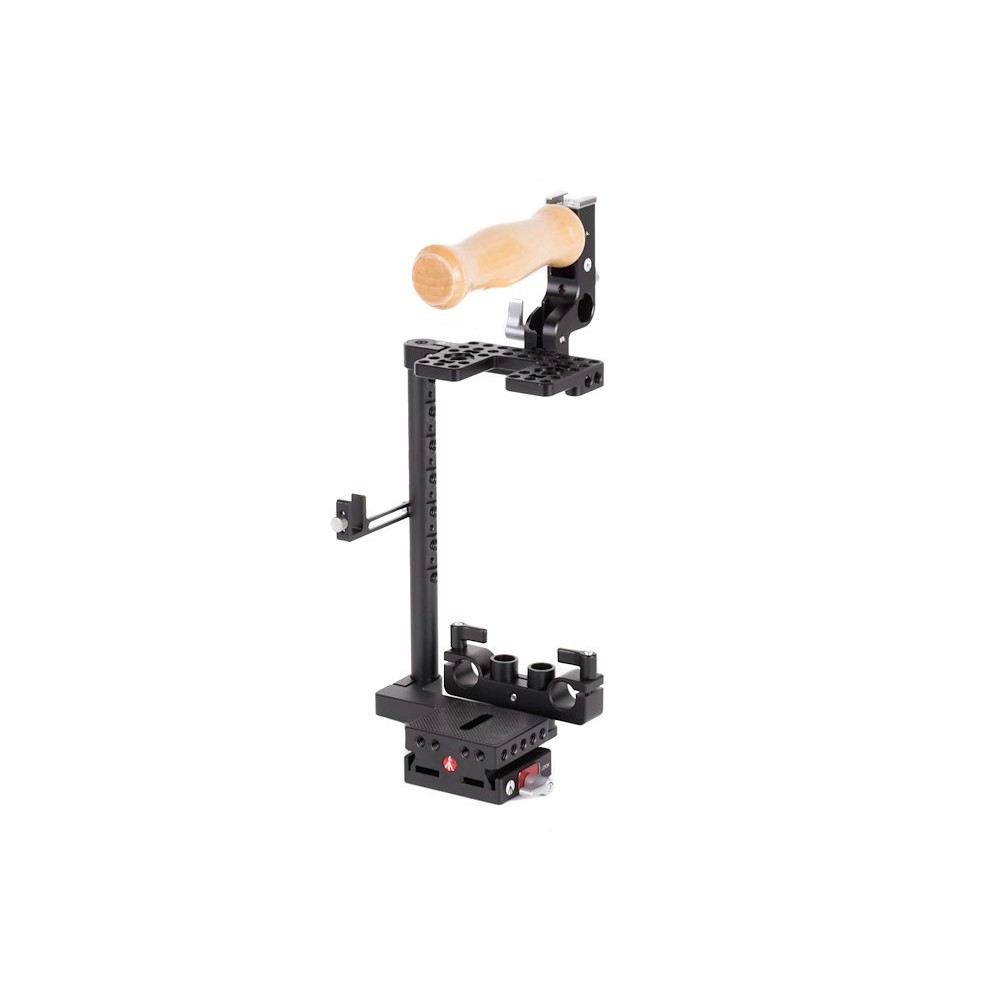 Tento minimalistický klecový rám je vyroben z odolného hliníku, je lehký, ale robustní a nabízí 1/4" a 3/8" upevňovací body na horní a bočních stranách pro příslušenství, jako jsou mikrofony, monitory a světla. Je vybaven otočnou horní rukojetí s integrovaným uchycením pro studený blesk a 15mm tyčovou svorkou pro přesné umístění jednotek follow focus nebo matteboxů. Rukojeť lze sklopit pro kompaktní přepravu nebo namontovat svisle jako sekundární rukojeť.
