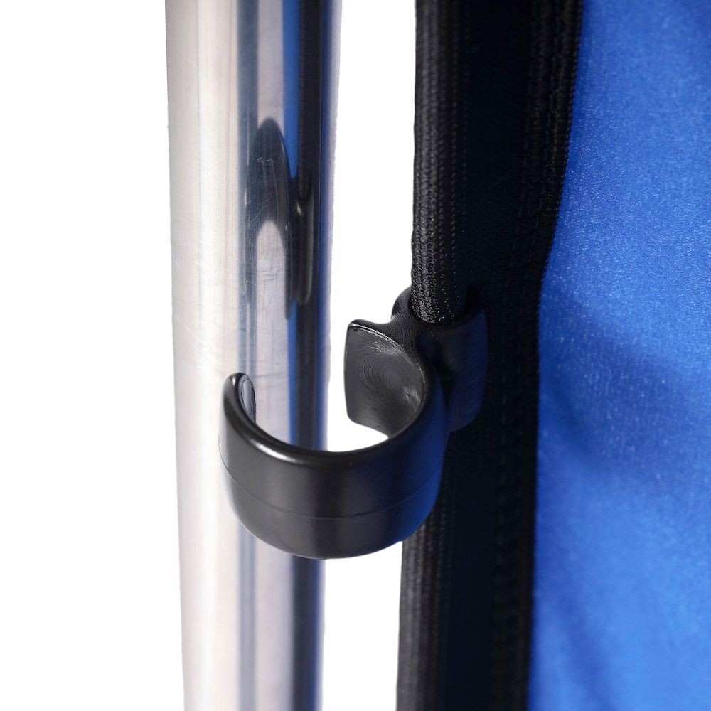 Sada se skládá z látkového pozadí drženého třídílným pevným hliníkovým rámem se šesti klipy a dvěma napínacími tyčemi. Rám má elastickou šňůru, která prochází jeho částmi, takže žádné díly nelze ztratit, a tyče drží látku napnutou s minimem vrásek pro rychlé, snadné a přesné klíčování v postprodukci. Rám lze nakonfigurovat podle vašich potřeb: zakřivený, aby byl samostatně stojící, nebo rovný a opřený o zeď nebo jinou oporu pro přístup k celé pracovní ploše. Celá sada se složí na rozměry pouhých 103 x 30 cm a vejde se do přiložené přepravní tašky.