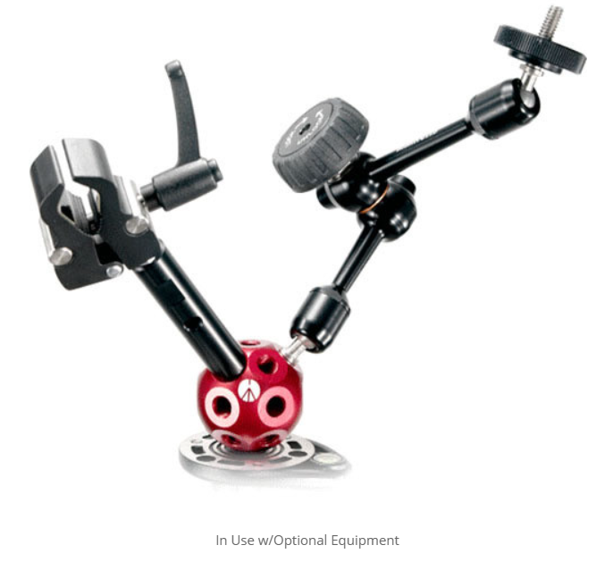 Sada Manfrotto Dado Kit vytváří 360° víceramenný hub z jediného stativu nebo super svorky. Červená hliníková koule má šest 3/8"-16 zásuvek uspořádaných v přesném geometrickém vzoru, do kterých lze zasunout šest černých 3" (7,6 cm) tyčí – každá s 3/8"-16 závitem na obou koncích. Přidejte další tyče Dado, ramena Magic Arms nebo čepy a namontujte LED diody, klopové mikrofony, goba nebo reflektory v libovolné orientaci.