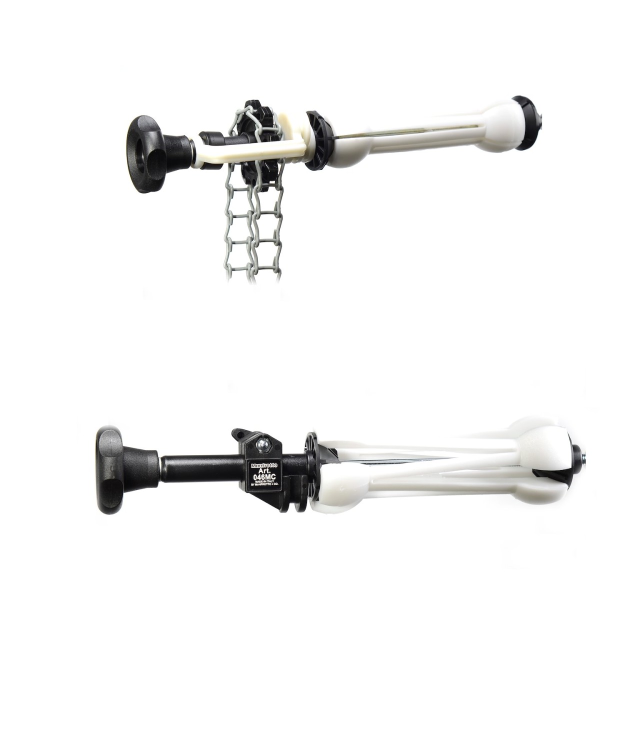 Sada Manfrotto 046MCG Expan je standardní systém pro pohon pozadí, který je navržen pro snadné a přesné ovládání jedné role bezšvového pozadí. Jednoduše vložte dvě roztažitelné jednotky Expan do jádra role papíru, namontujte je na stojany nebo háčky pro pozadí a pomocí přiloženého šedého kovového řetězu s protizávažím rychle srolujte papír nahoru nebo dolů – to vše bez nutnosti nastavovat výšku stojanů.