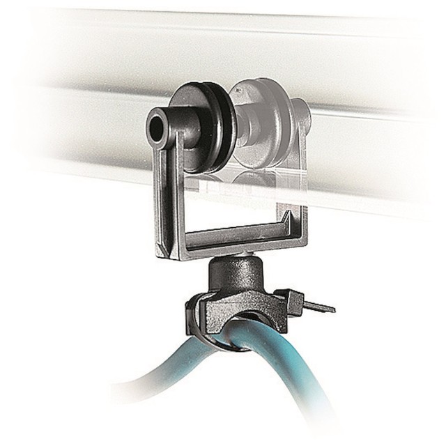 Sada pěti speciálních kabelových vozíků FF3226. Každý lehký vozík se zasouvá přímo do spodního kanálu kolejnice (bez nutnosti koleček) a tiše klouže, jak se pohybuje pantograf nebo světlo, čímž zabraňuje visení, houpání nebo zachycování kabelů. Tyto odolné polymerové kolejnice, které jsou ideální pro studia používající více světel na nadzemních kolejnicích, podporují standardní kabely jakékoli rozumné tloušťky a jsou továrnou doporučeným řešením pro čistou a bezpečnou správu kabelů v prostředí televizního vysílání, fotografie a videoprodukce.