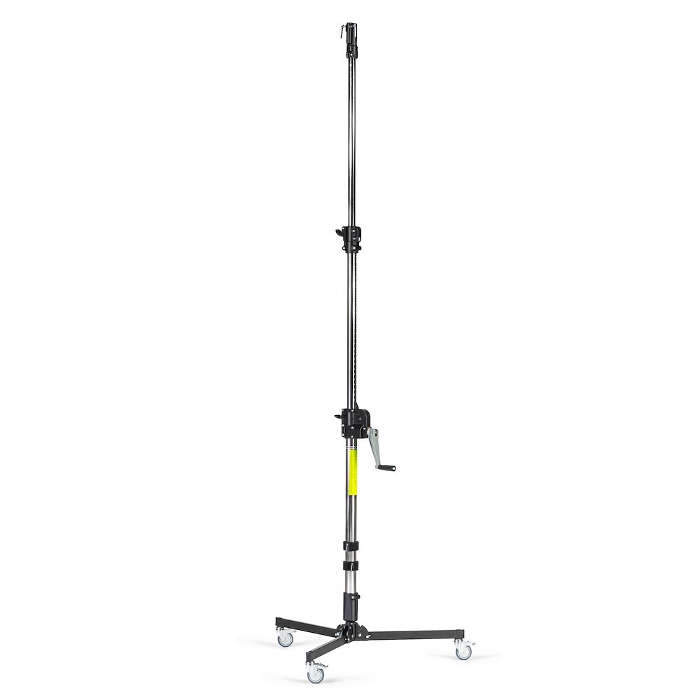 Stojan Manfrotto 087NWLB Low Base Wind-Up Stand je určen pro profesionální práci ve studiu i v terénu a poskytuje stabilní a univerzální podpůrný systém pro osvětlení, pozadí a další vybavení. Tento třídílný stojan je vyroben z robustní oceli a je vybaven ozubeným středovým sloupem pro přesné nastavení výšky a dvěma výškovými sekcemi, které umožňují maximální pracovní výšku 276 cm.