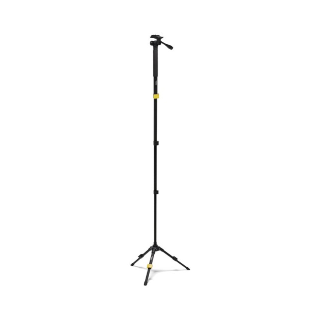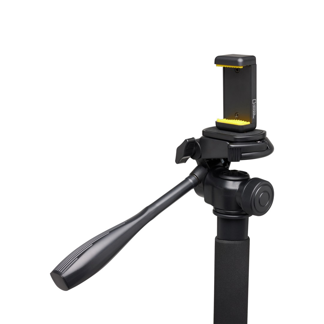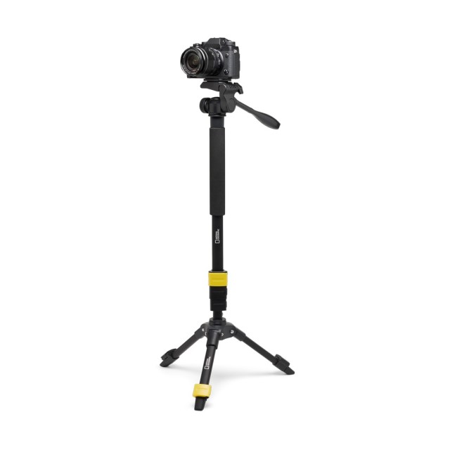 Monopod Manfrotto NGPM002 National Geographic Photo 3-in-1 je lehký hliníkový systém o hmotnosti 860 g, který se přizpůsobí jakémukoli fotografování. Čtyři sekce s klopným zámkem se vysouvají do impozantní výšky 189 cm pro snímky nad hlavou, zatímco odnímatelná základna stativu se dvěma sekcemi nohou přidává pevnou stabilitu nebo se přemění na kompaktní stolní stativ pro makro nebo videohovory. 3cestná otočná/naklápěcí hlava je vybavena patentovanou 1/4"-20 rychloupínací deskou, nezávislou aretací otáčení a 90° vertikálním naklápěním pro plynulou orientaci na výšku. Pěnová rukojeť zajišťuje pohodlí a přiložená svěrka na smartphone (až 8,4 cm) podporuje tvorbu obsahu pomocí telefonu.