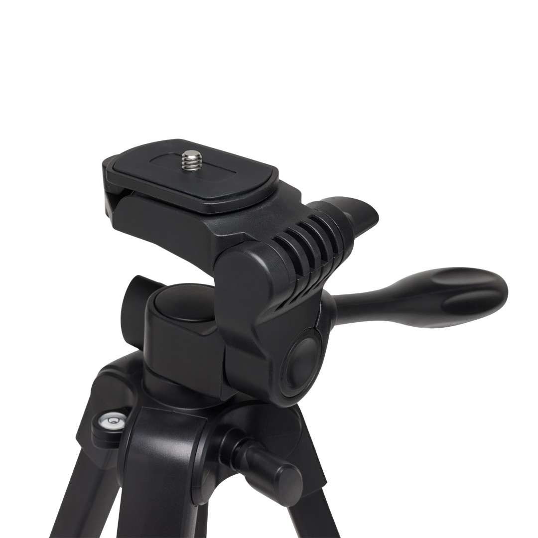 Malý stativ Manfrotto NGPT001 National Geographic Photo váží 596 g, 3dílný hliníkový kit, který se složí na ~55 cm, vysune na 137 cm a unese 2,5 kg. Je vybaven 3cestnou hlavou, 90° naklápěním, rychloupínací deskou, vodováhou, svorkou na smartphone (≤8,4 cm) a přenosným pouzdrem – ideální pro základní digitální zrcadlovky, bezzrcadlovky, bridge fotoaparáty nebo vlogování pomocí telefonu.