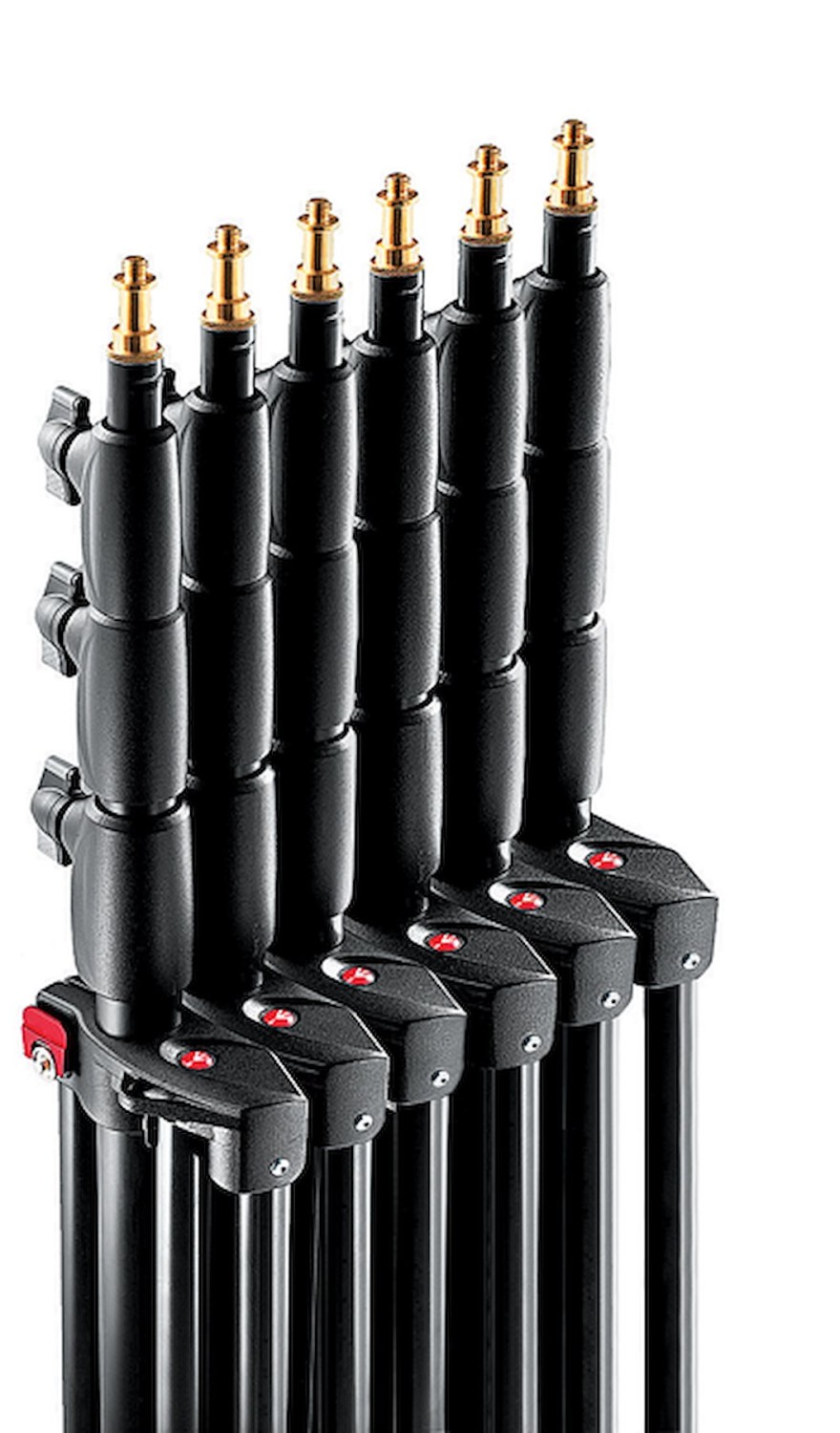 Stativ má 4 sekce s 3 výsuvnými částmi. Je vybaven vzduchovým tlumením, takže můžete pracovat rychle, aniž byste se museli obávat poškození zařízení v důsledku náhodného uvolnění. Podstavec se rozevírá až do 107 cm takže vaše snímky tak budou stabilní i na drsnějších terénech. Dodává se také se standardními a snadno kompatibilními doplňky, obsahující 16 mm (5/8 ”) horní čep a 9,5 mm (3/8”) nebo 6,4 mm (1/4 ”) závit. Jeho působivý výškový rozsah od 124 cm do 366 cm umožňuje pozvednout osvětlovací zařízení do nových výšin!