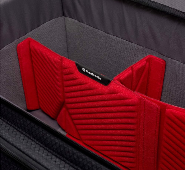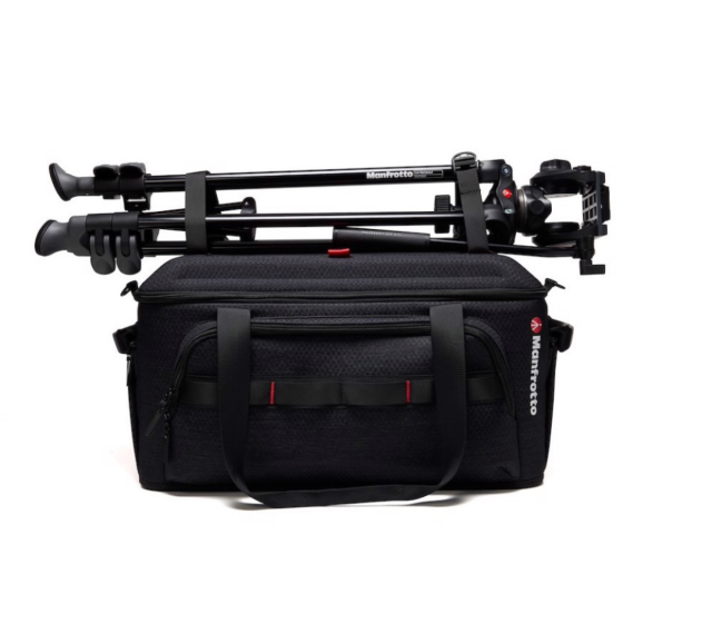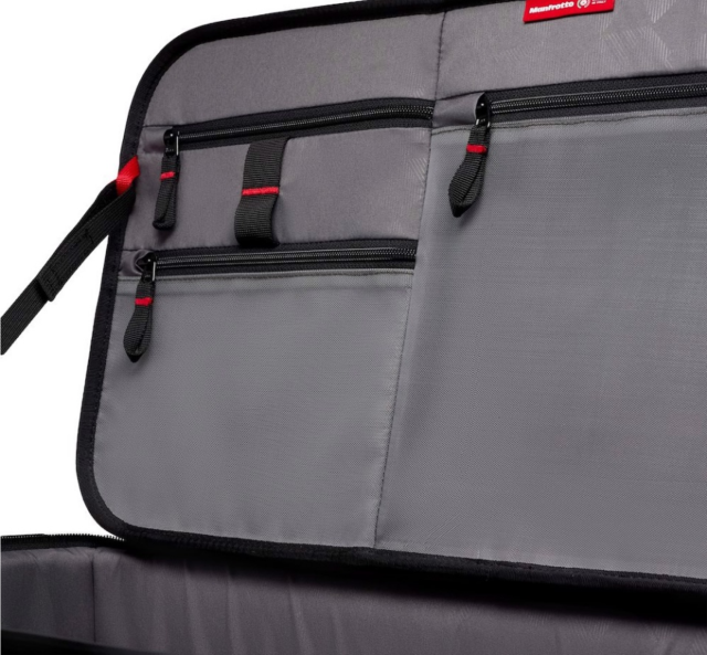 Vyztužená poutka na popruhy na zadní straně a na dně brašny umožňují bezpečné přenášení brašny na vozíku nebo kárce při pohybu po studiu nebo na místě natáčení. Součástí balení je také odnímatelný ramenní popruh, který přidává další možnosti nošení, zatímco potažené dno a okénko na boku brašny dotváří verzi Large.
