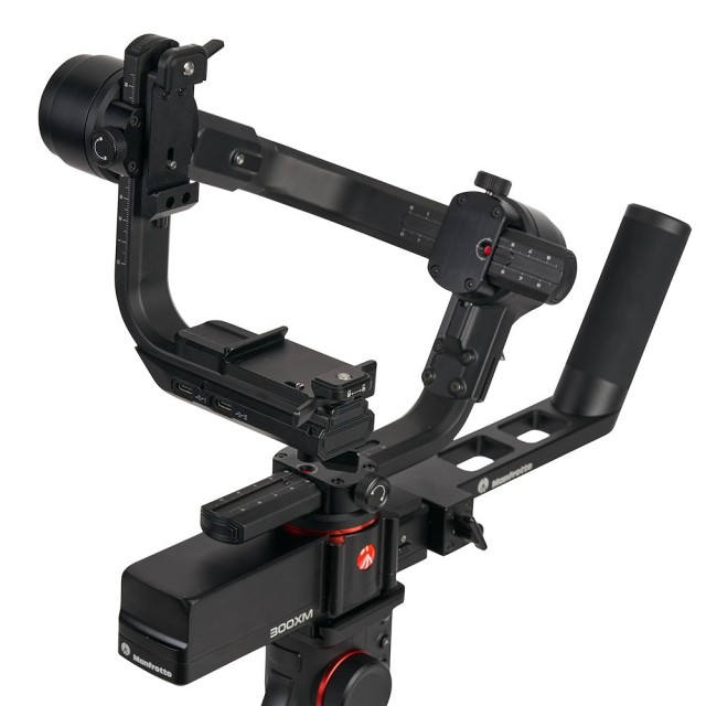 Profesionální 3osý modulární gimbal Manfrotto MVG300XM je špičkový modulární ruční stabilizátor určený pro profesionální kameramany používající CSC a DSLR fotoaparáty o hmotnosti až 3,4 kg (7,5 lb). Jeho modulární konstrukce zahrnuje odnímatelnou rukojeť, která slouží také jako dálkové ovládání, což umožňuje flexibilní ovládání v různých polohách a při různých stylech natáčení. Rukojeť stabilizátoru je vybavena dotykovým LCD displejem, joystickem a multifunkčním knoflíkem, které umožňují snadný přístup k nastavení, pohybům stabilizátoru a ovládání zaostření.