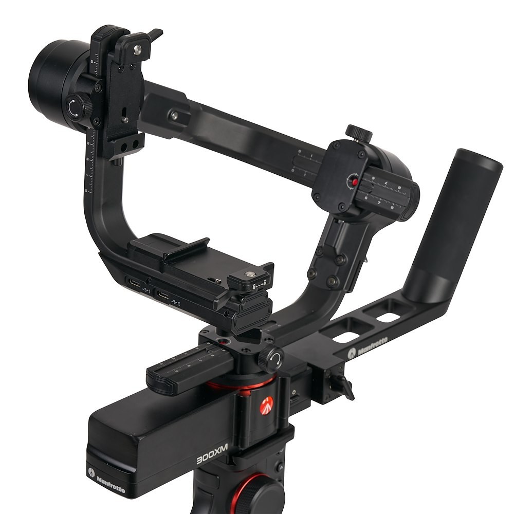 Vyvažování je zjednodušeno díky paměťovým červeným tečkám na svislých i příčných ramenech a nezávislé zámky os zabraňují otřesům během přepravy. MVG300XM podporuje řadu režimů natáčení, včetně Timelapse, Inception, Panorama, Portrait a Selfie. Odnímatelná zadní rukojeť zajišťuje stabilní podporu v různých úhlech a mini stativ umožňuje rychlé nastavení a vyvážení. Speciální aplikace Manfrotto Gimbal 300XM umožňuje dálkové ovládání a pokročilé funkce přes Wi-Fi.