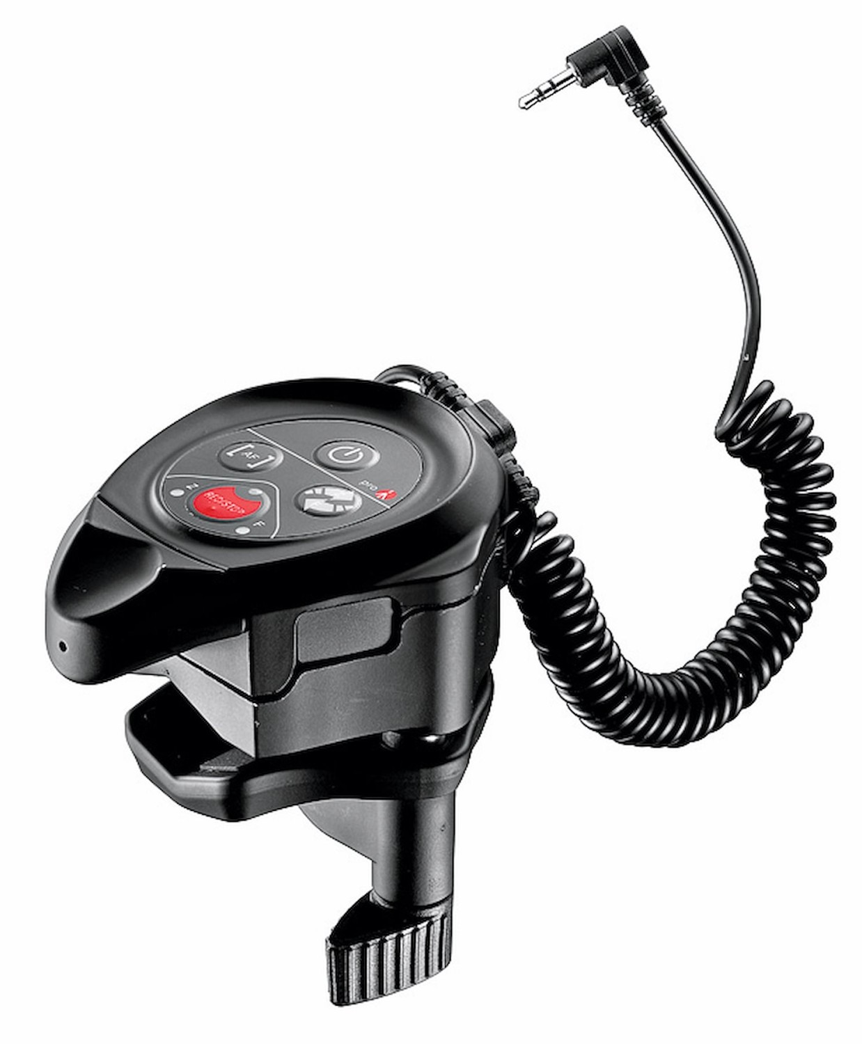 Manfrotto MVR901ECLA je špičkové dálkové ovládání LANC určené pro videokamery Sony a Canon, které podporují protokol LANC. Lze jej připevnit přímo na prakticky jakýkoli pan bar (průměr 13–35 mm) pomocí robustní svorky s gumovými úchyty a je vybaven kompletní sadou ergonomických ovládacích prvků: kolébkovým přepínačem pro více rychlostí zoomu, otočným knoflíkem pro zaostření/zoom, potenciometrem pro maximální rychlost zoomu, tlačítkem REC/STOP, tlačítkem stand-by, přepínačem pro změnu směru a LED indikátory stavu. Kabel o délce 1,4 m poskytuje dostatečný dosah na rigách, zatímco tělo z technopolymeru udržuje hmotnost na pouhých 120 g. Široce používáno televizními, dokumentárními a eventovými kameramany pro plynulé ovládání prstem, aniž by museli sundat ruce z pan baru.