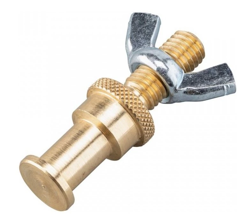 Manfrotto 264 je leštěný mosazný 16 mm (5/8") baby stud s vnějším závitem M10 a přiloženou křídlovou maticí, určený k zašroubování do jakékoli objímky M10 Super Clamp, čímž se z ní stane bezpečný držák pro osvětlovací techniku.