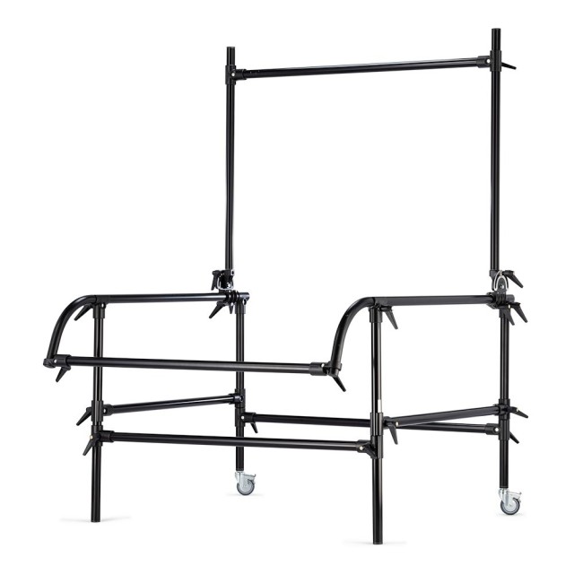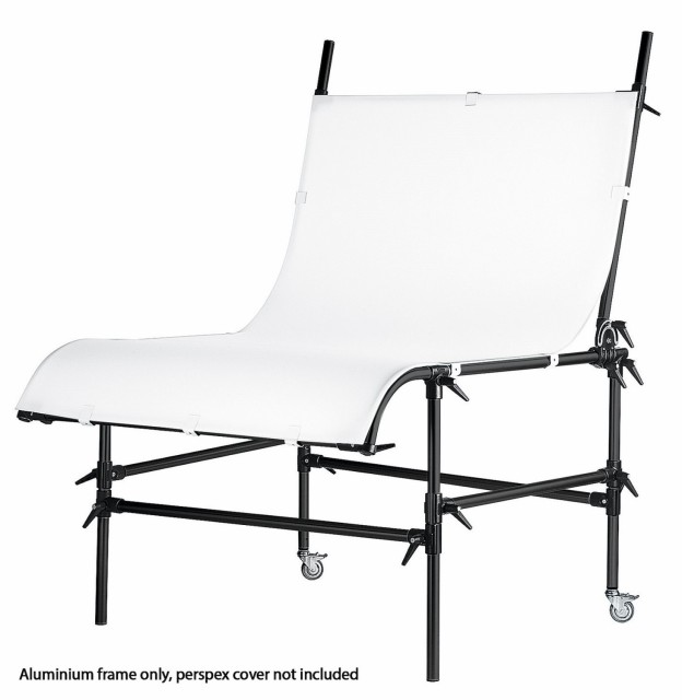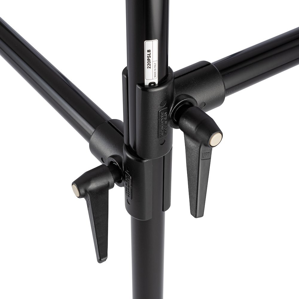 Manfrotto 220PSLB je vybaven matným černým neprůhledným akrylovým panelem o rozměrech 200 × 122 cm (6,5 × 4 ft), který je namontován na odolném hliníkovém rámu, který se sestaví během několika minut bez použití nářadí. Zadní panel lze naklonit od 0° (rovný) do 90° (vertikální) pomocí plynulých aretačních knoflíků, čímž lze vytvořit plynulé nekonečné zátočiny nebo dramatické úhly nad hlavou až do výšky 193 cm. Díky pracovní výšce 83 cm je ideální pro fotografování ve stoje nebo v sedě, zatímco volitelná brzděná kolečka (220WC) a průsvitný kryt z plexiskla (220PX) jej promění v plnohodnotný světelný stůl. Ideální pro e-commerce, katalogy nebo fotografování potravin, kde je vyžadováno čisté černé pozadí bez stínů – odolný, stabilní a nekonečně konfigurovatelný.