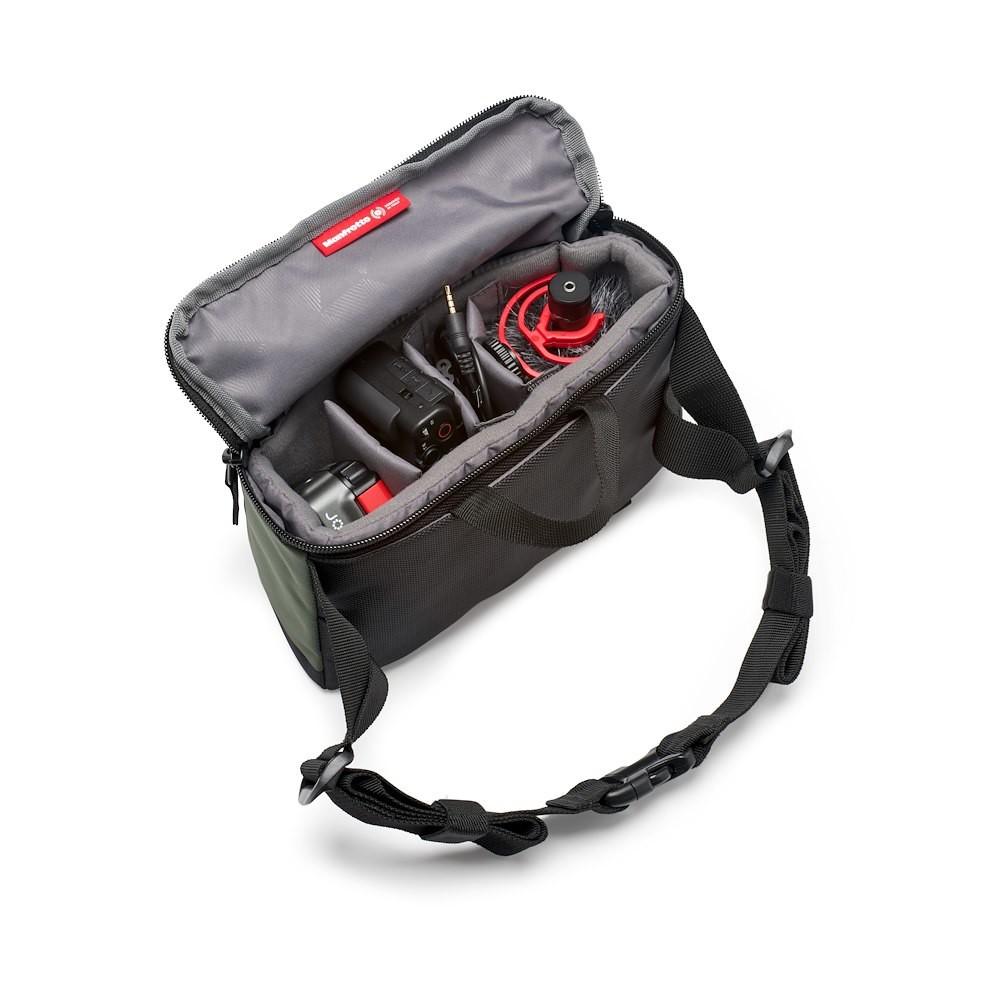 Taška Manfrotto Street Waist Bag se díky 4 cm širokému, dvojitě nastavitelnému popruhu s robustní sponou s rychlým uvolněním promění z ledvinky na tašku přes rameno. Hlavní přihrádka na zip se otevírá shora dolů pro okamžitý přístup k vybavení, zatímco odnímatelná polstrovaná vložka s pohyblivými přepážkami pojme CSC (A6400, EOS M50) s objektivem z kitu a jedním pevným objektivem nebo vlogovací soupravu s mikrofonem/LED. Vyjměte vložku a získáte 2litrovou tašku pro každodenní použití na telefon, peněženku a klíče. S hmotností pouhých 300 g je to ideální řešení pro street fotografy, dojíždějící nebo piloty dronů, kteří potřebují rychlé a flexibilní přenášení.
