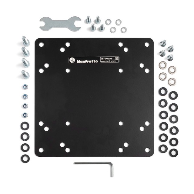 Manfrotto TetherGear VESA adaptérová deska je doplňkem pro TetherGear VESA držák monitoru. Po bezpečném připevnění na VESA držák monitoru je vám umožněno připevnění na větší monitory a obrazovky s VESA konfigurací v rozměrech 120x180 mm, 180x120 mm, 200x100 mm a 200x200 mm.
