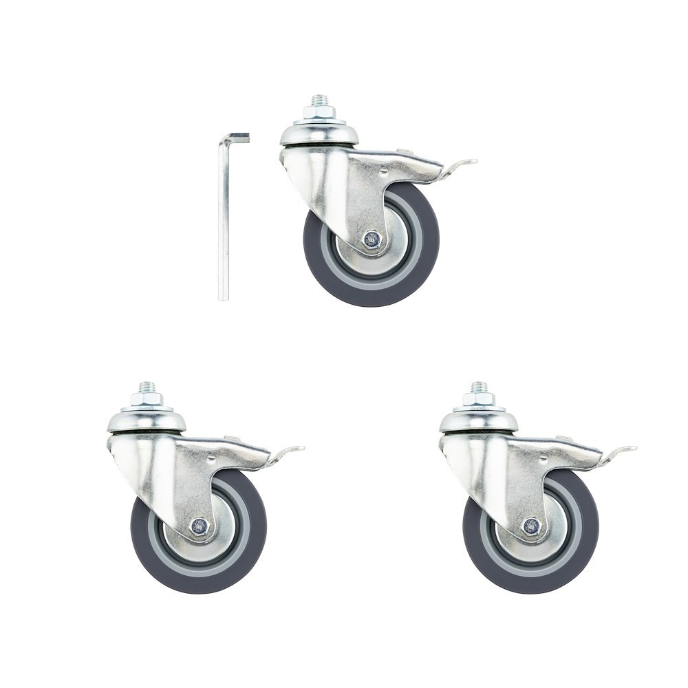 Sada koleček Manfrotto (104) se skládá ze tří 75mm koleček s brzdou a závitem M10, která promění kompatibilní světelné stojany Manfrotto v hladce pojízdné, uzamykatelné plošiny s nosností až 75 kg – ideální pro přemísťování C-stojanů, kombinovaných stojanů nebo těžkých zařízení ve studiu.