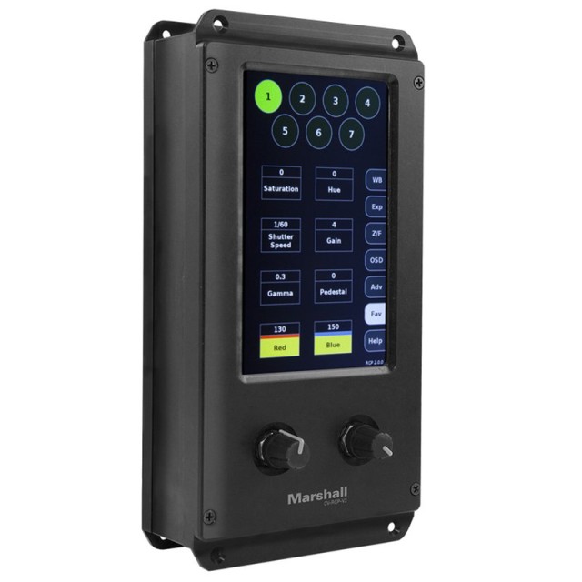 Společnost Marshall se spojila s pětinásobným držitelem ocenění Sports Emmy a vyvinula samostatné vzdálené řešení RCP pro nastavení, barvení a přizpůsobení vysílacích kamer Marshall. Nová jednotka RCP Camera Control s 5palcovou dotykovou obrazovkou umožňuje vzdálené ovládání až sedmi vysílacích kamer na vzdálenost až 300 m (1 000 stop) prostřednictvím běžného kabelu XLR a je vybavena novým intuitivním ovládáním na dotykové obrazovce s uživatelsky přívětivými, jemně nastavitelnými voliči pro rychlé změny za chodu.