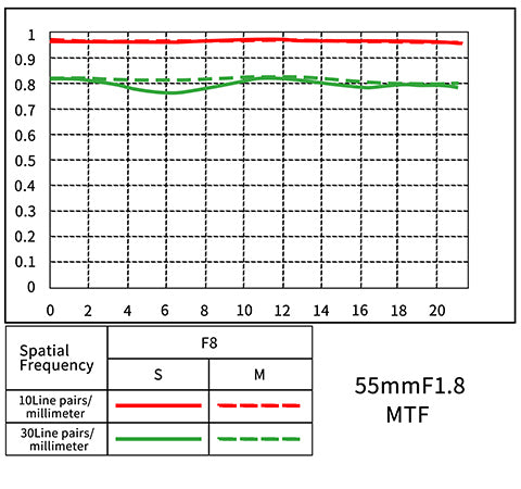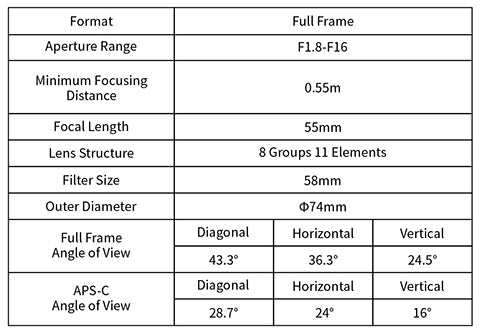 55mm F1,8 podporuje fotoaparáty s vysokým rozlišením a snímači 8K. Dokáže obnovit každý detail obrazu. výkonné rozlišení je schopno uspokojit vyšší požadavky na kvalitu obrazu.