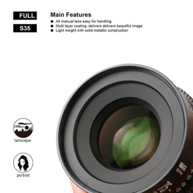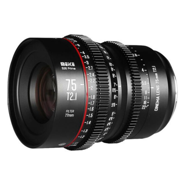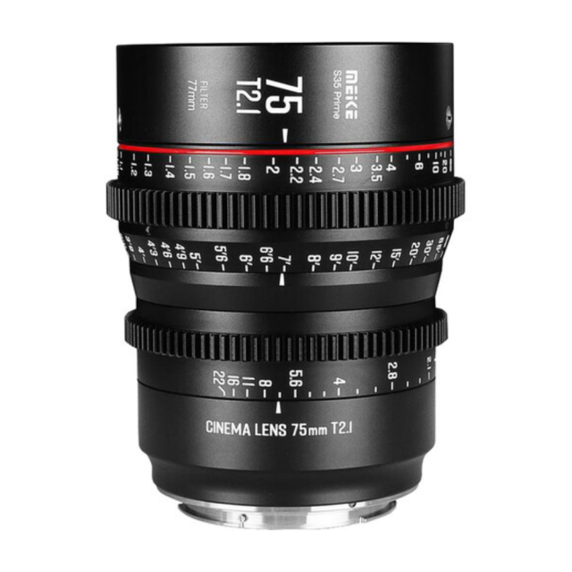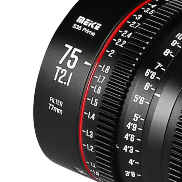 Třetí kinofilmový objektiv Meike z řady Super35-Prime Cine Lens: Meike 75 mm T2.1 Tento objektiv s obrazovým kruhem 33,6 mm je kompatibilní s fotoaparáty Super 35 a bude k dispozici ve dvou bajonetech, PL/EF.Tento objektiv je jedním z kinofilmových objektivů Meike v nové řadě Super35-Prime Cine Lens.Má standardní 0,8mm převody na zaostřovacím a clonovém kroužku.