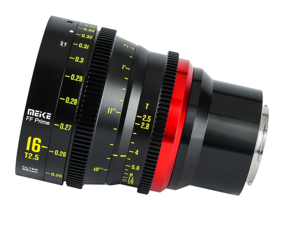 Jedná se o šestý FF kinofilmový objektiv společnosti Meike, který se nyní připojuje k rodině FF kinofilmových objektivů. Pokrývá obrazový kruh 45 mm. Je k dispozici s bajonety PL, Canon EF, Canon RF, Sony E a Panasonic L. Kompletní sada obsahuje objektivy 16 mmT2,5,24 mm,35 mm,50 mm,85 mm,105 mmT2,1,135 mmT2,4. Objektiv je vybaven standardními převody s roztečí 0,8 mm na zaostřovacím a clonovém kroužku. konstrukce objektivu Meike 16mm T2.5 FF-Prime se skládá ze šestnácti členů v jedenácti skupinách. clonový mechanismus se skládá z 11 lamel. Minimální zaostřovací vzdálenost je 30 cm.
