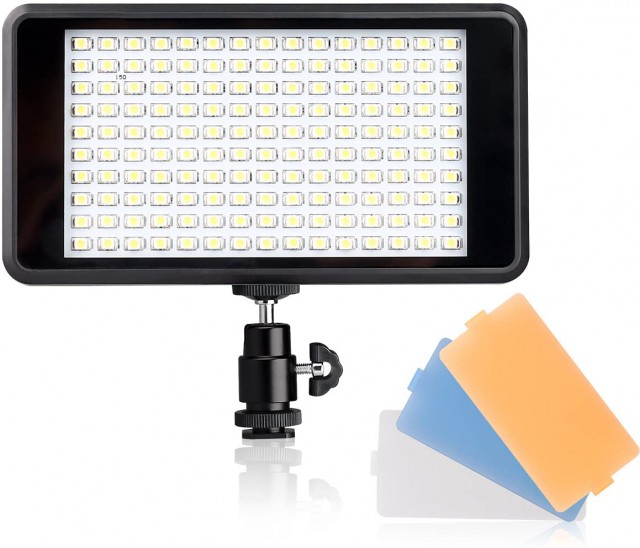 Kamerové LED světlo se 150 diodami (1300 lux@0,5 m, 340 lux@1 m; 5500K + trojice filtrů) a integrovaným akumulátorem s výdrží cca 90 minut a nabíjením po USB rozhraní. Bohaté možnosti montáže vč. bleskové redukce a kleštiny pro mobilní telefony. Váha 240 g, rozměry 140x75x20 mm.