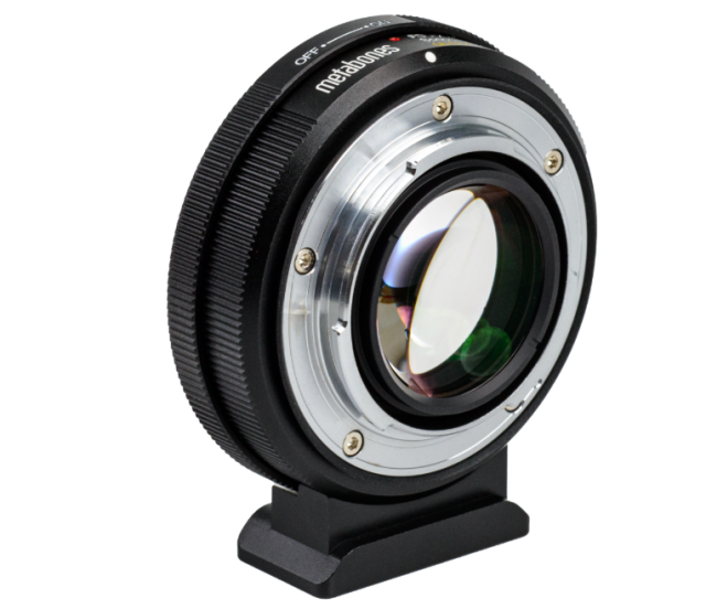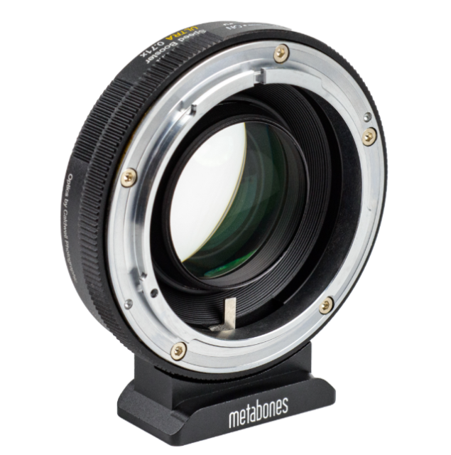 Adaptér snižuje ořezový faktor fotoaparátů s bajonetem X a snímačem APS-C z 1,5x na 1,07x, čímž efektivně promění profesionální zoomové nebo pevné objektivy na ekvivalenty s vyšší světelností. Například objektiv Canon 50 mm f/1,2 se stane objektivem 35,5 mm f/0,9, přičemž si zachová vynikající rozlišení v celém záběru. Konstrukce z hliníkové slitiny a mosazi s chromovým pokovením zajišťuje odolnost a gumové těsnění chrání bajonet X-mount před prachem a vlhkostí. Součástí balení je odnímatelná stativová patka typu Arca, která zajišťuje bezpečné uchycení na kulové hlavy Arca-Swiss, Markins a Photo Clam.