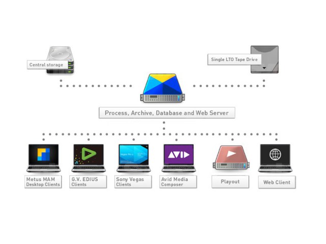 Jelikož však běží na jediném serveru, je nejvhodnější pro malé až středně velké zákazníky. Jak se odráží v licenční struktuře, architektura systému omezuje možnost škálování archivu a nejsou k dispozici některá rozhraní API a volitelné součásti systému Metus MAM Enterprise, například vyhledávání na základě obrázků a správa životního cyklu informací.
